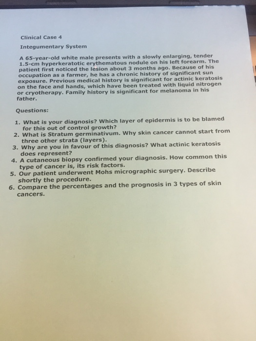 An essay about emergency medicine. - Inspect head and scalp for color hair distribution lesions and hair texture Inspect scalp for infestations Inspect and palpate skin for texture moisture and temperature Pinch skin folds over clavicle to check skin turgor and mobility Note. Integumentary System Case Studies - International Meta Consciousness Academy. Welcome to the world of case studies that can bring you high grades. Select on Moodle and research one of the following disorders of the integumentary system. Essay on majha avadta khel in marathi. What are some differences between Judy and. This case requires knowledge of burns child abuse as well as an understanding of the clients background personal situation and mother-child attachment relationship. Integumentary System Tiffany Holliman Chamberlain College of Nursing BIOS251-64065 August 8 th2021 2 The doctors told Karen that she had suffered from hyperthermia which is a condition that usually happens when the body has a high body temperature.